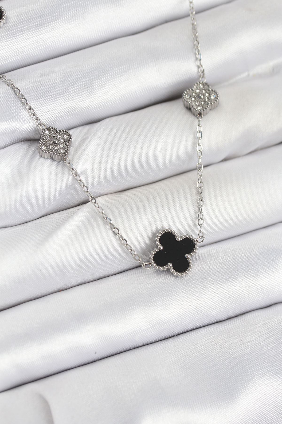 316L Çelik Zincir Gümüş Kırmızı Renk Yonca Kadın Kolye