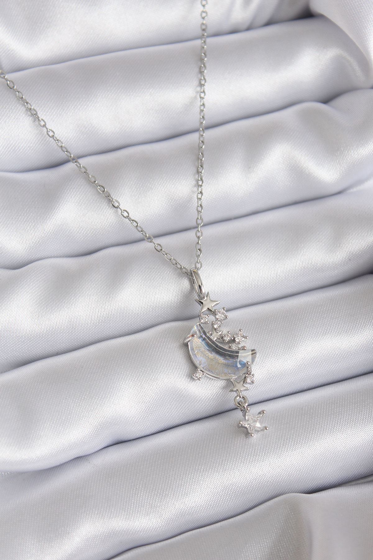 316L Çelik Zincir Gümüş Renk Zirkon Taşlı Kelebekli Kadın Kolye