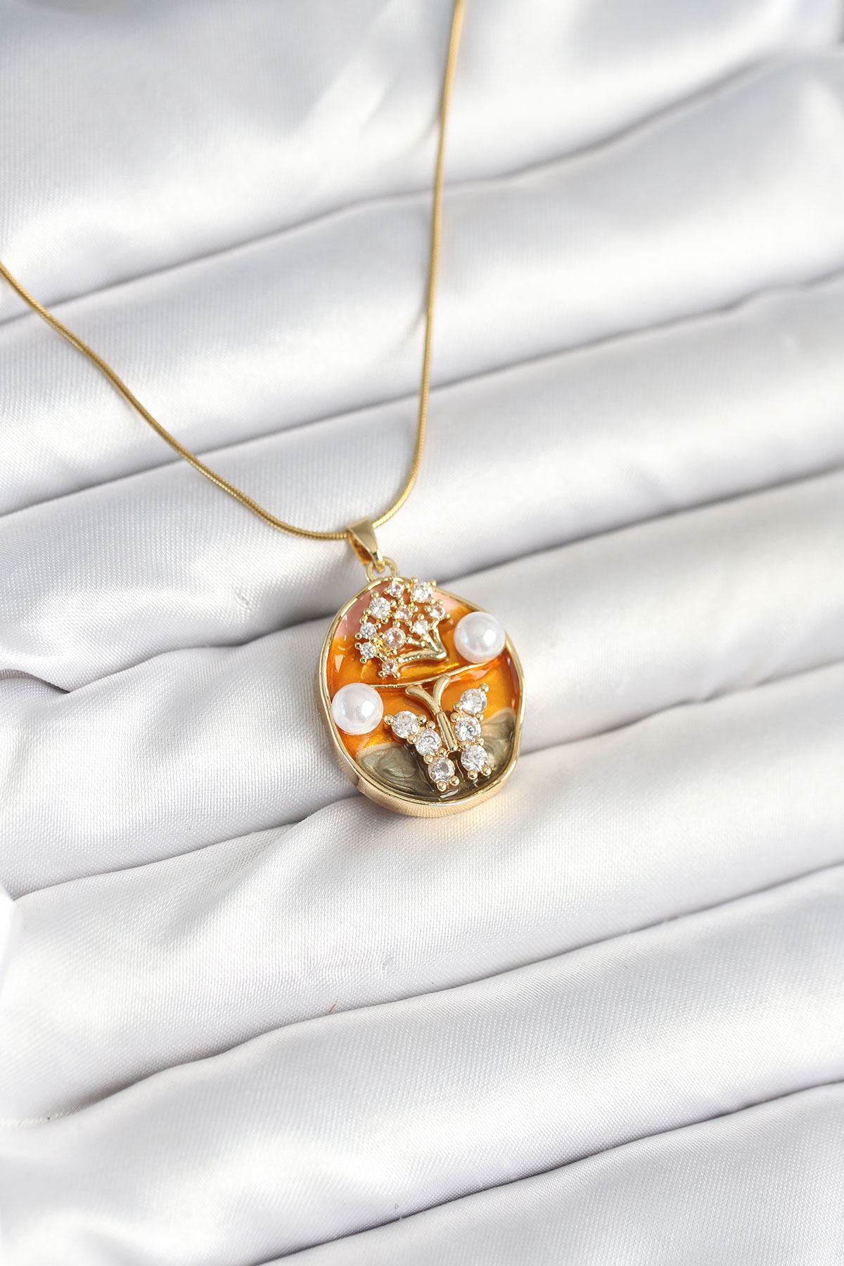316L Çelik Zincir Gümüş Renk Zirkon Taşlı Kelebekli Kadın Kolye