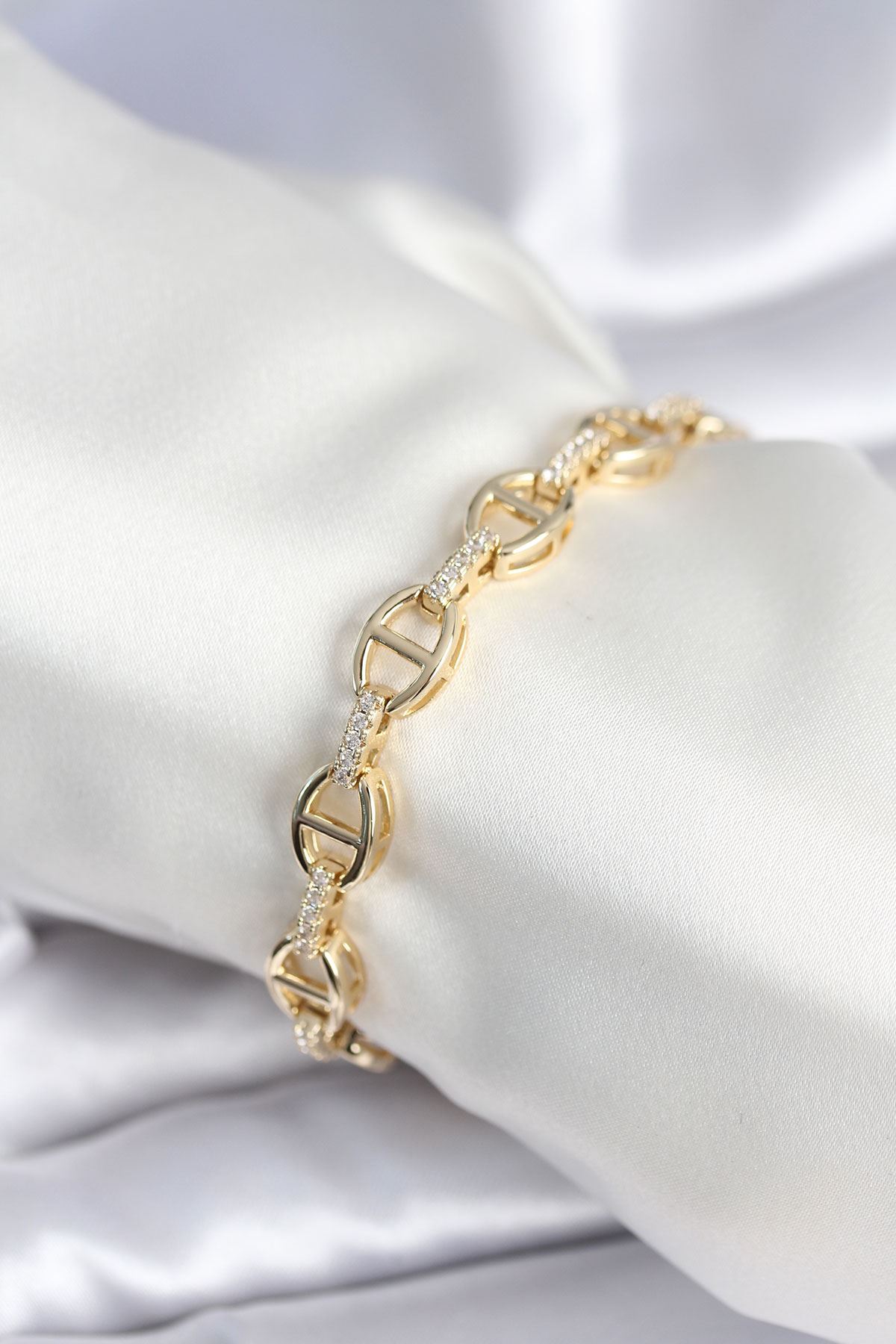 Pirinç Gold Renk Zirkon Taşlı Kadın Bileklik