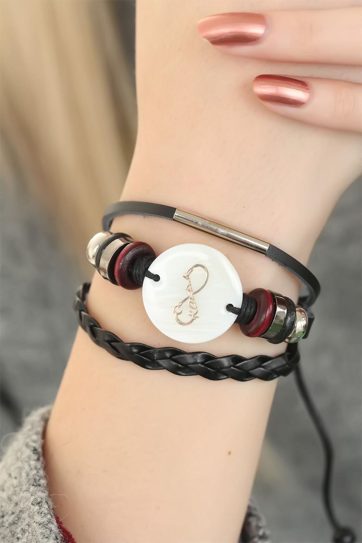 Siyah Renkli Sonsuzluk Tasarım Çoklu Deri Bayan Bileklik