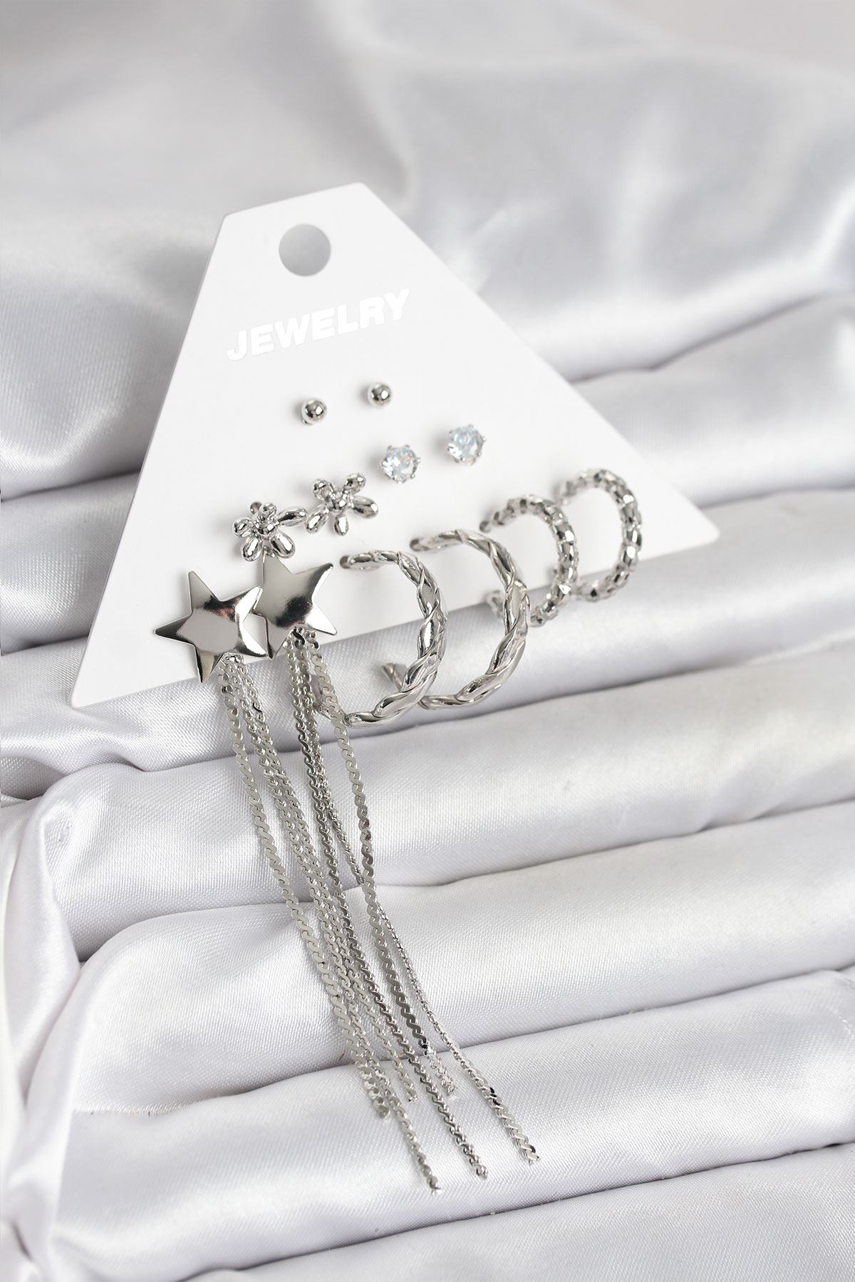 Gümüş Renk Pirinç 6'lı Kadın Küpe Seti