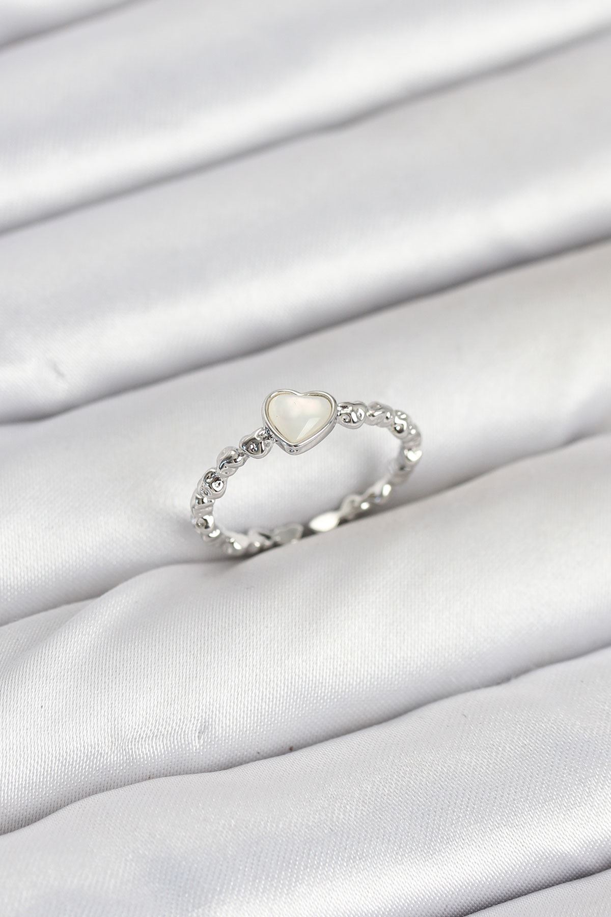Pirinç Gümüş Renk Kalpli Detaylı Zirkon Taşlı Kadın Yüzük